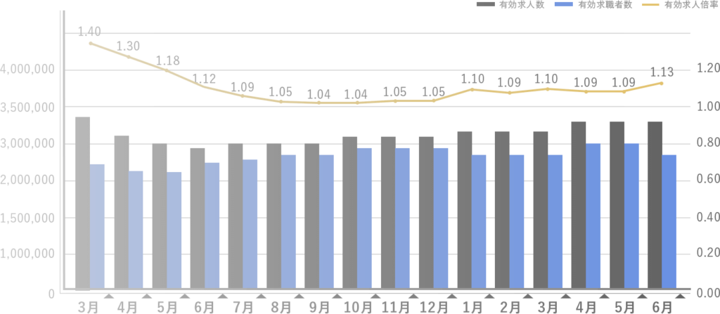 ※2021年6月のデータ/厚生労働省「一般職業紹介状況」より