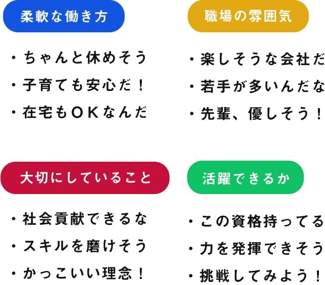 理想の職場に出会いたい。そんな求職者の共感を誘い「ここで働きたい!」と思わせることが、採用成功への最短ルートです。